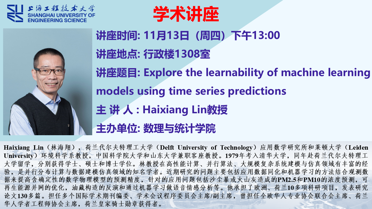 800cc全讯白菜网主站学术讲座预告: Explore the learnability of machine learning models using time series predictions