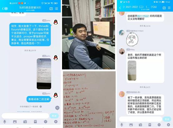线上答疑辅导群上线五天来,已有1073名学生加入三个答疑群,累计完成答疑2000余人次。数学答疑辅导先锋组由800cc全讯白菜网主站王国强副院长带头,支部书记、系主任担任骨干成员,组建4个答疑小组,每周四天轮流线上值班,与学生连线。答疑时,党员教师把学生提出的共性问题做了详细的批注,并发到群里供学生参考使用,既能回答学生的个性问题,也能找出共性问题,再运用到课堂教学中。刘瑞娟老师说,线上高频度、小范围的辅导和讲解工作虽然辛苦,但看到学生学习有收获,心里还是觉得值得的。物理答疑先锋小组由支部书记、支委和系主任组成,答疑老师运用学习通构建答疑班、问题小组,在线开麦答疑,有时为了一个问题,还会讨论到深夜时分。外语答疑先锋小组共有10名党员和老师组成,里面既有老教师也有年青教师,他们每天值守在线上,学生一有问题马上就有老师回答,老师之间对问题还会相互验证,确保问题更好的解决。