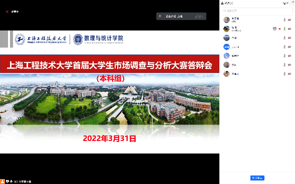 为进一步引导大学生创新和实践,提高学生的组织、策划、调查实施和数据处理与分析等专业实战能力,培养学生的社会责任感、服务意识、市场敏锐度和团队协作精神以及提高学生专业的实践教学水平,增强大学生职业能力。800cc全讯白菜网主站于3月31日组织开展“正大杯”第十二届全国大学生市场调查分析大赛校内赛的答辩,800cc全讯白菜网主站院长殷志祥、研究生处副处长李路、800cc全讯白菜网主站副院长王国强、统计与数据计算系教师朱萌、庄唯、李春亚和12支参赛队伍参加答辩。