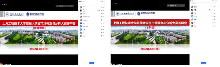 On March 31st, the School of Mathematics, Physics and Statistics organized the internal defense of the 12th National Market Research and Analysis Competition. The competition aims to further guide college students to innovate and practice, to improve their professional practical ability such as organization, investigation and implementation, data processing and analysis.