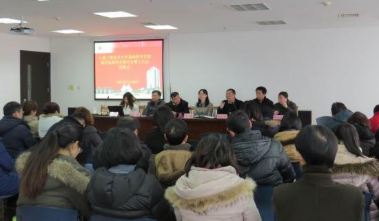 张朝民副院长和刘晓民副院长分别就基础教学学院、外国语学院(筹) “十三五”规划总体思路与发展目标做了解读。院办主任严晓春作了经费使用情况报告。学院工会主席张蓓做了工会工作报告,从加强师德建设、保障教工权益、开展多彩活动和走访慰问送温暖等几个方面总结了工会过去一年的工作。