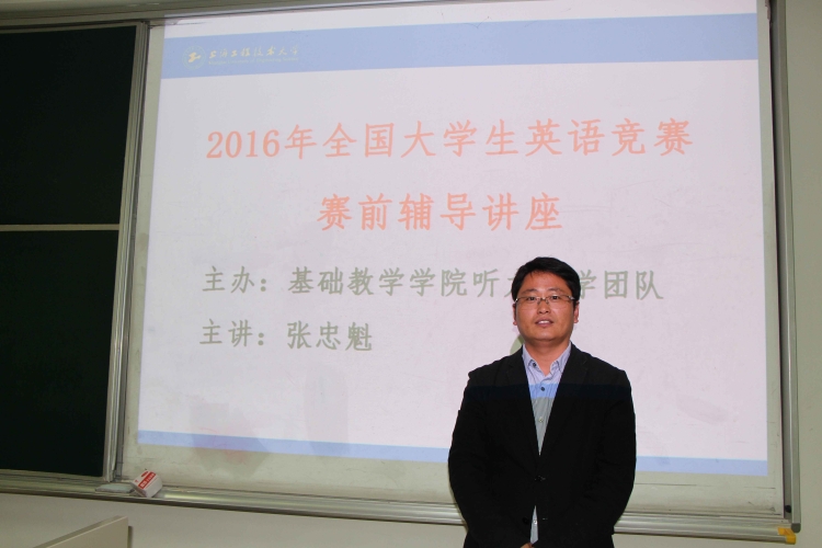 2016年全国大学生英语竞赛(初赛)将于4月10日举行,基础教学学院很重视这次竞赛,得到了各位领导的重视。为了让我校参赛学生更好地了解竞赛题型,掌握做题方法和技巧,基础教学学院大学英语听力教学团队于3月30日举行了竞赛辅导讲座。该讲座由富有竞赛辅导经验的大学英语听力教学团队的张忠魁老师主讲。