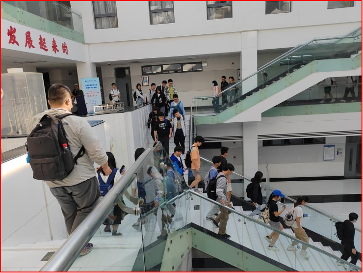 为了进一步提高广大师生的消防安全意识,增强了自救能力和自我保护意识,11月1日,800cc全讯白菜网主站在实训二号楼开展了本年度第二次突发应急事件逃生疏散演练。